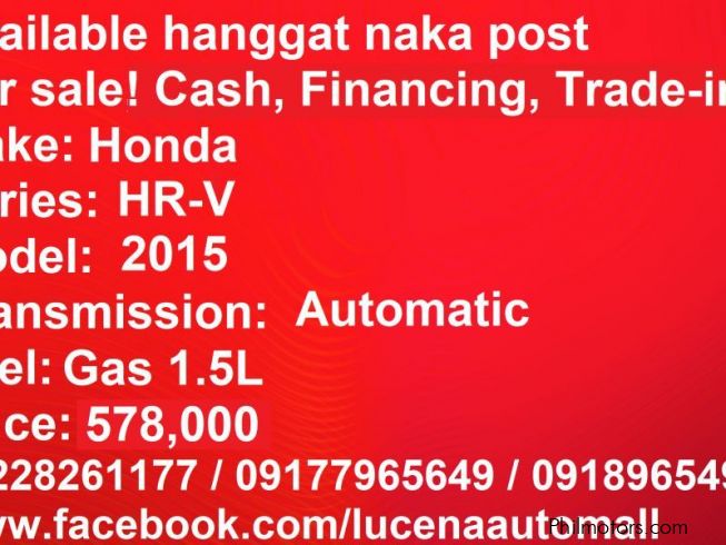 Pre-owned HR-V automatic Lucena City for sale in Quezon - used vehicles in Philippines - Old cars to buy in Philippines - secondhand HR-V automatic Lucena City cars in Philippines -