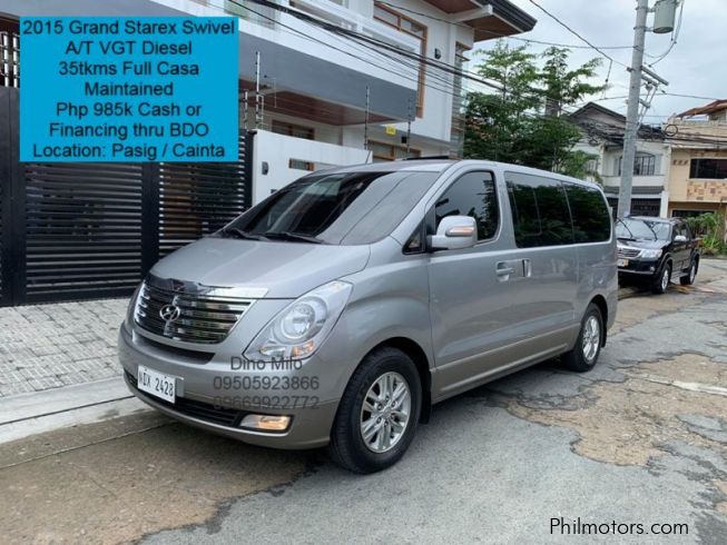 2015 Grand Starex Swivel A/T VGT Diesel 35tkms++ ONLY (Full Casa Records since day one) Dual Airbag, ABS. Overhead TV Monitor Super OC Owner. Serviced at Hyundai Casa every 6 months regardless of mileage. All Booklets are complete. Radio and Aircon knobs has relatively no blemishes as well. 4 New Tires as well. Nexen Brand 10ply rating. Not Budget meal tires. Very Cold Aircon. Complete with Owners Manual, Service Booklet, Radio and Monitor Booklets, Full Set of Tools, Duplicate Remote Key, etc. No hidden problems whatsoever. Some simply tamper the mileage, but not this one. See personally to appreciate. 100% NOT FLOODED or your Money back *QUALITY CARS FOR QUALITY CUSTOMERS* Php 985000 Cash or Financing thru BDO Pasig/Cainta Area