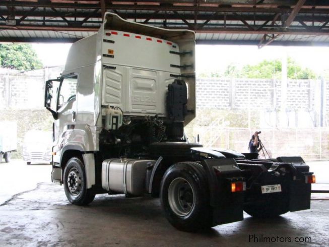Isuzu GIGA EXR QL4180U2JDR Tractor Head Prime Mover 4x2 6 wheeler 380 horsepower 1,765 N.m Torque; 6UZ1-TCG50 Euro5 engine, 16-speed Manual Transmission: ZF16S2030TO; Gross Combination Weight: 42,000 kgs; Overall Length: 5,790 mm; Overall Width: 2,540 mm; Overall Height: 3,970 mm; High roof; auxiliary air brakes, Anti-lock Braking System (ABS), power steering, 315/80R22.5 18PR (12R22.5 18PR) tires, air suspension seats, air suspension cabin, high roof, 400 Liter fuel tank, warranty: 1 year or 50,000 kms whichever comes first