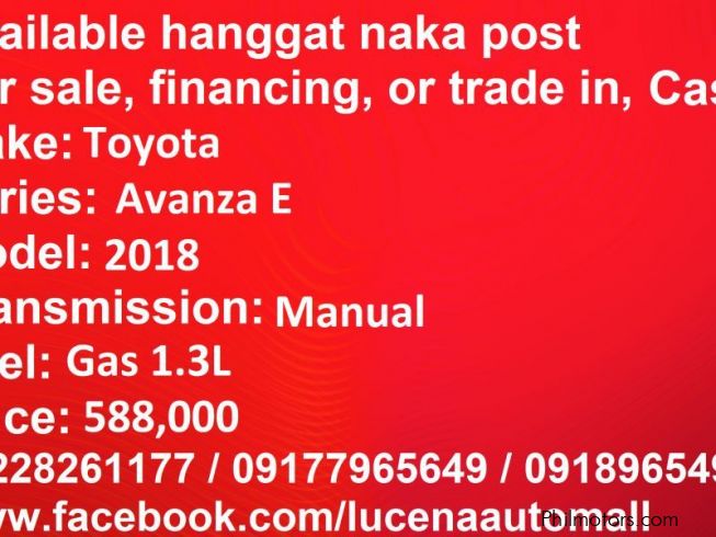 Buy a car in Philippines - Toyota car sales Philippines - Find a Avanza E manual Lucena City car sale in Quezon - Second hand Toyota cars Philippines -