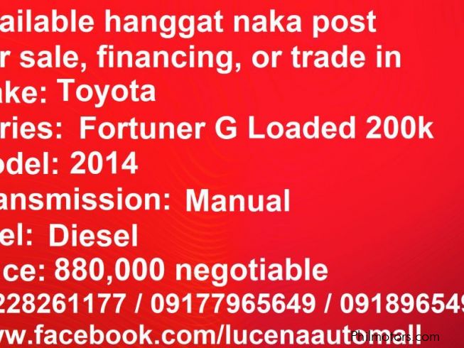 Pre-owned Fortuner G MT Diesel Lucena City for sale in Quezon - used vehicles in Philippines - Old cars to buy in Philippines - secondhand Fortuner G MT Diesel Lucena City cars in Philippines -