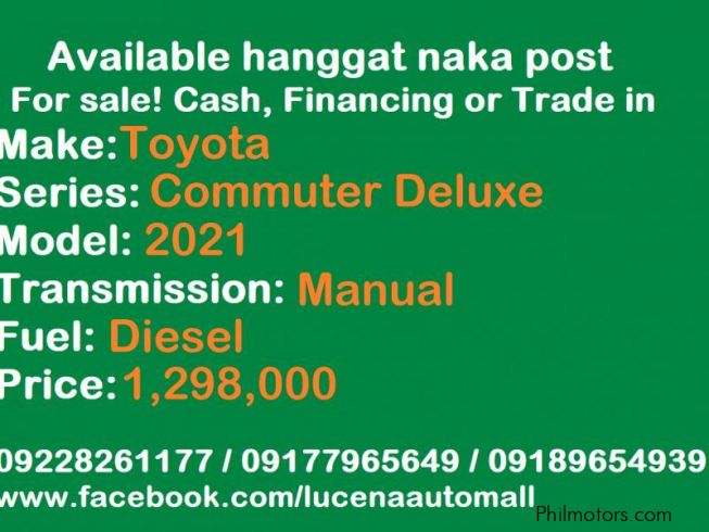 Pre-owned Hiace Commuter Deluxe VAN MT Lucena City for sale in Quezon - used vehicles in Philippines - Old cars to buy in Philippines - secondhand Hiace Commuter Deluxe VAN MT Lucena City cars in Philippines -