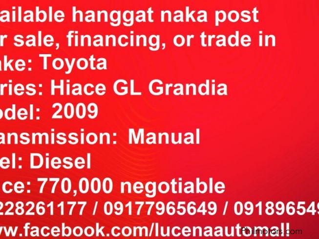 My 2009 Toyota Hiace GL Grandia Van Manual Diesel Lucena City