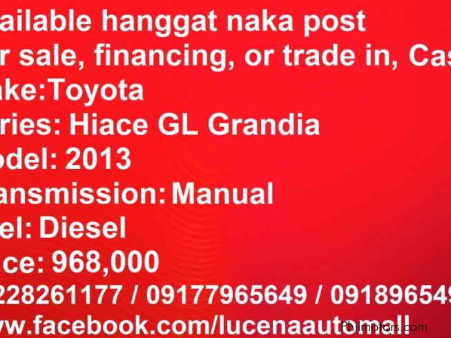 My 2013 Toyota Hiace GL Grandia VAN Diesel MT Lucena City