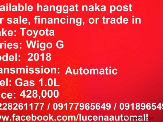 Used car dealers in Philippines for Toyota Toyota Wigo G Automatic Lucena City - Toyota Wigo G Automatic Lucena City cars for sale in Philippines - Toyota cars Quezon - used cars Toyota Wigo G Automatic Lucena City in Philippines - Quezon Toyota cars - Buy a car in Philippines - Toyota car sales Philippines - Find a Toyota Wigo G Automatic Lucena City car sale in Quezon - Second hand Toyota cars Philippines - Pre-owned Toyota Wigo G Automatic Lucena City for sale in Quezon - used vehicles in Philippines - Old cars to buy in Philippines - secondhand Toyota Wigo G Automatic Lucena City cars in Philippines - Second hand Toyota cars for sale in Philippines - buying a car in Philippines - second hand cars in Philippines - Pre-used vehicles for sale Philippines - Toyota Wigo G Automatic Lucena City used car in Philippines - Toyota cars sold in Philippines - second-hand vehicles Philippines