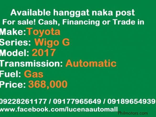 Buy a car in Philippines - Toyota car sales Philippines - Find a Wigo G Automatic Lucena City car sale in Quezon - Second hand Toyota cars Philippines -